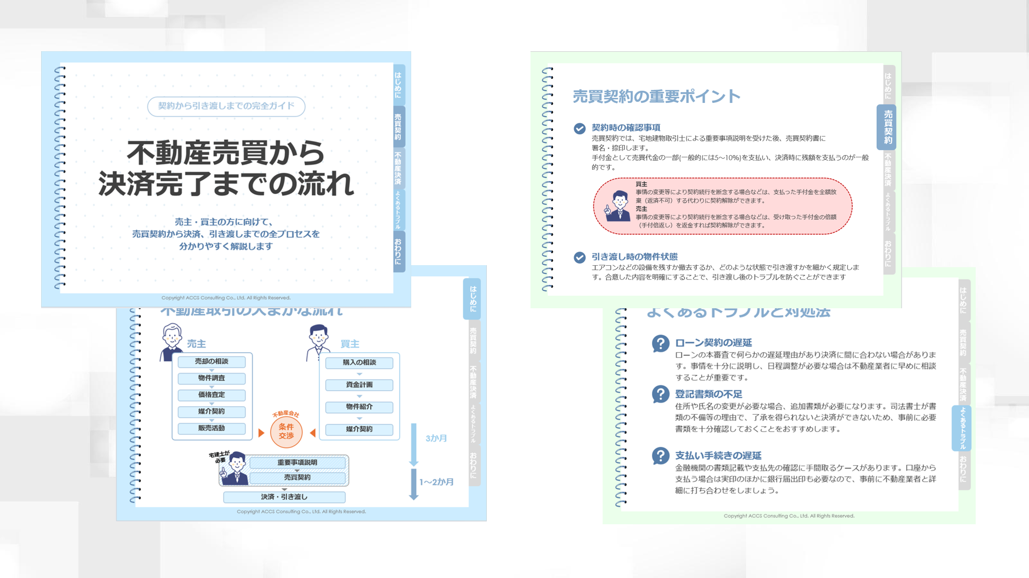 不動産営業マンが売主、買主に向けて、売買契約から決済、引き渡しまでの全プロセスをわかりやすく解説したガイドブックです。