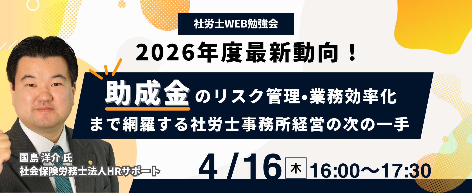 今回は、社会保険労務士法人HRサポートの国島氏を講師にお迎えします。