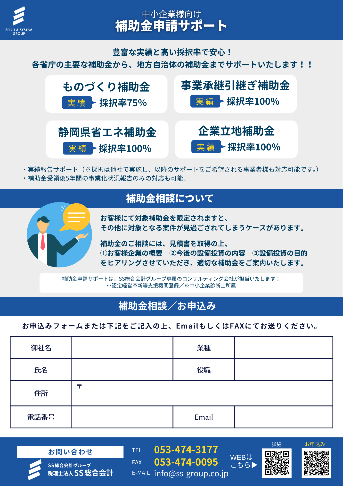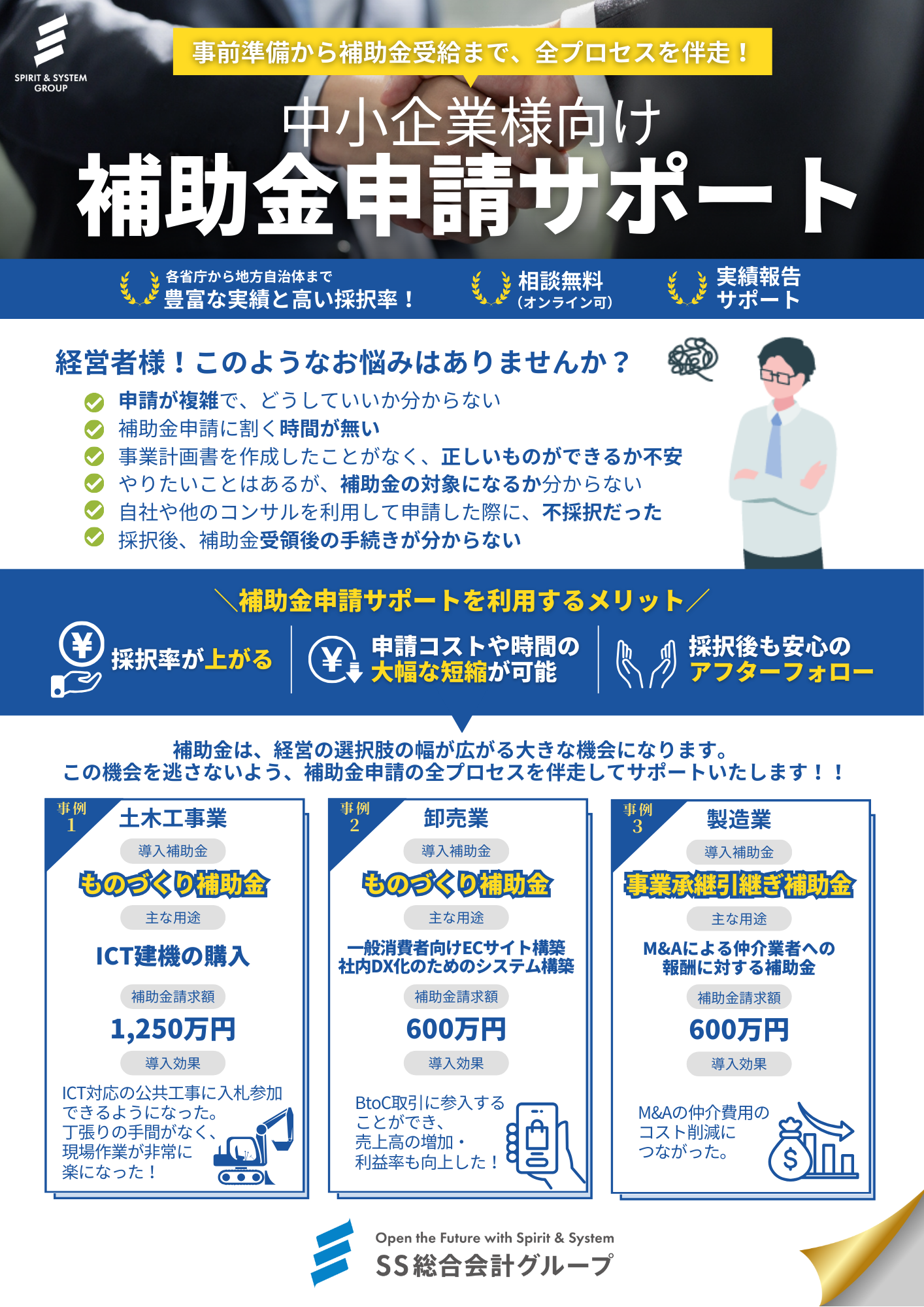 補助金申請サポートは、SS総合会計グループ専属のコンサルティング会社が担当いたします!