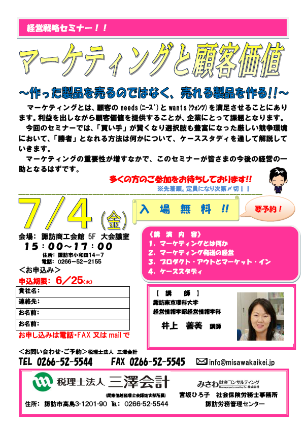 ご出席いただける方は、税理士法人三澤会計までFAX(0266-52-5545)ご連絡ください。