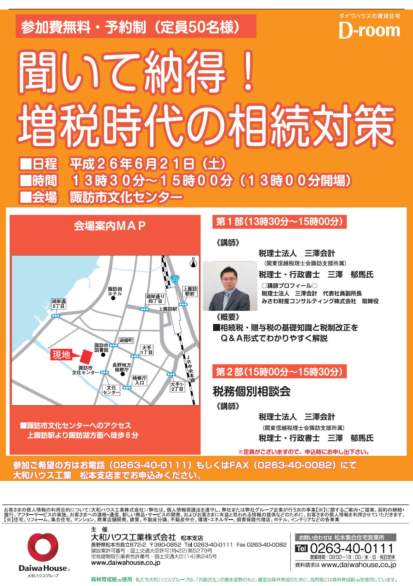 【セミナ-開催】聞いて納得!増税時代の相続対策