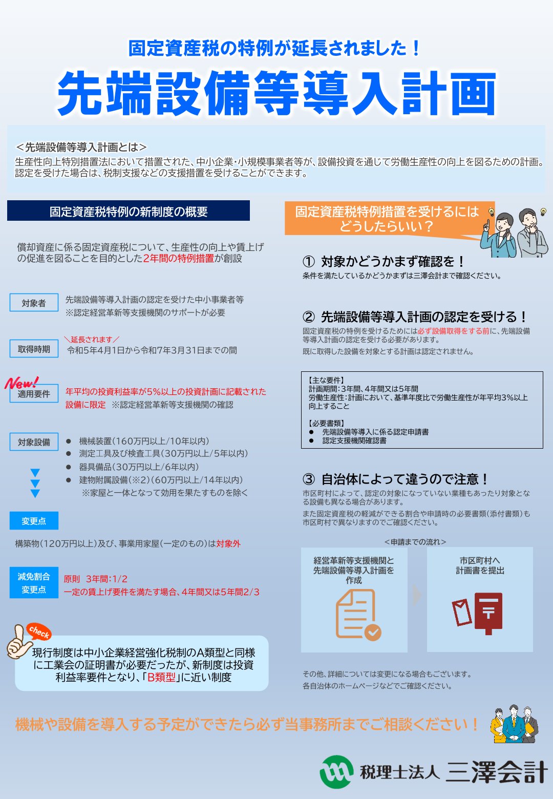機械や設備を導入する予定ができたら必ず三澤会計までご相談ください!