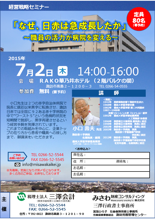 (三澤会計)諏訪日赤の小口先生が語る「なぜ、日赤は急成長したか」