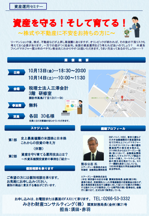 (セミナー開催)資産を守る!そして育てる!