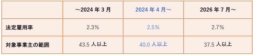 2024年4月より、障害者雇用率が更に引き上げられました。