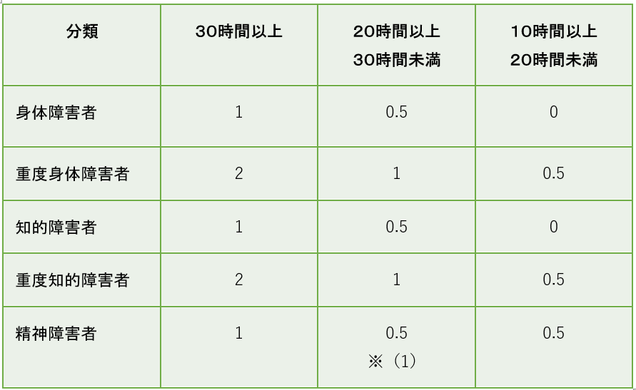 また、10時間以上20時間未満の重度の身体・知的障害者、精神障害者は今まで0カウントでしたが、2024年4月より0.5カウントとなりました。