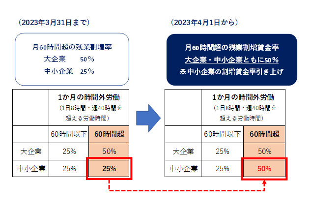 【中小企業も4月から施行開始!】60時間超の割増賃金率が引き上げられます