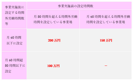 現在の残業時間が60時間以下という事業所が多いと思いますが、そういった事業所では昨年よりも助成される金額が半分になってしまいます。