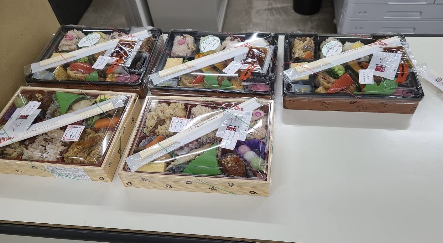 夜は所長がみんなのために買ってきてくれたお弁当を食べて、また仕事に戻ります。