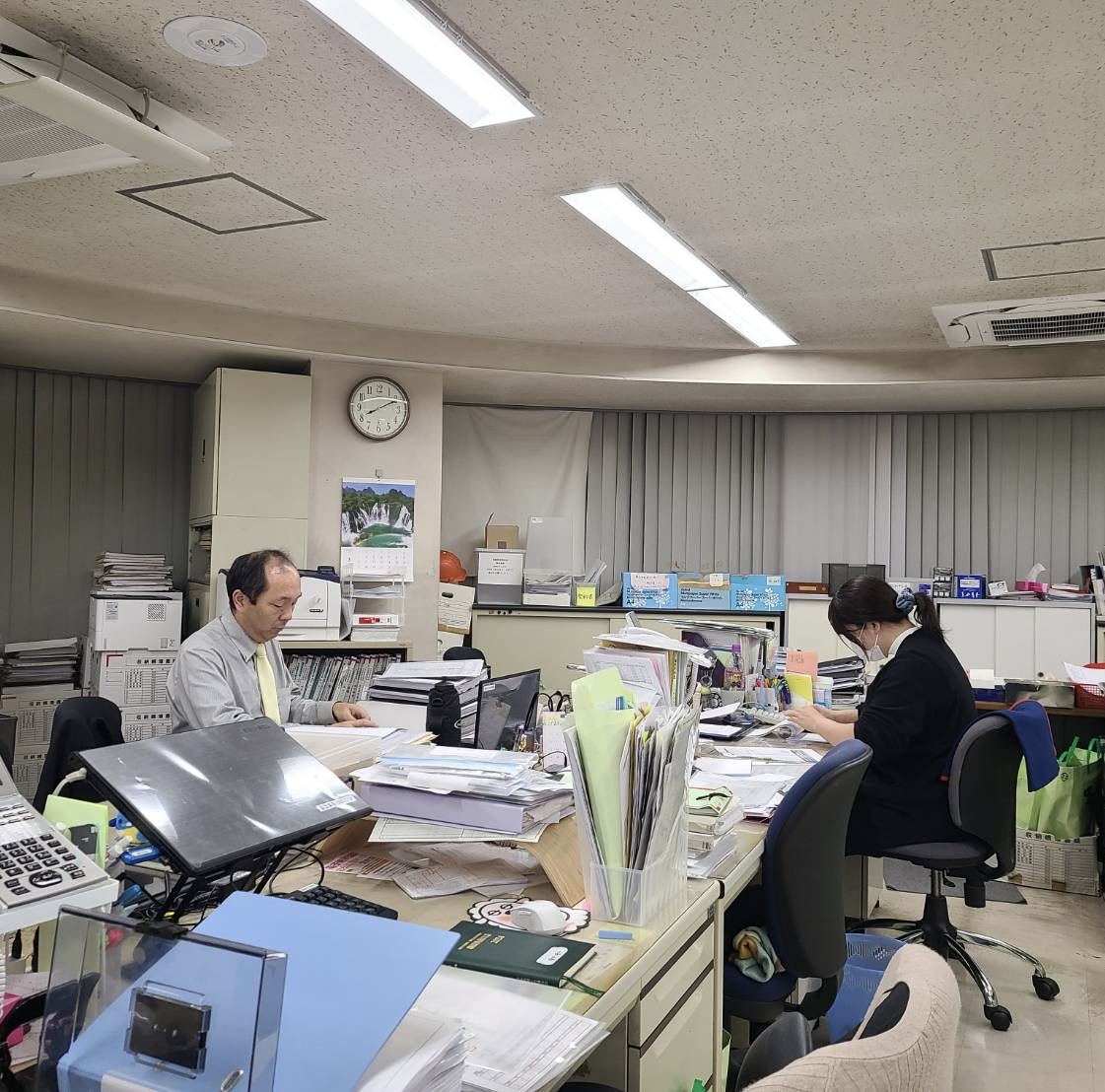 たくさんの資料に囲まれながら所員が真剣に取り組んでいます!