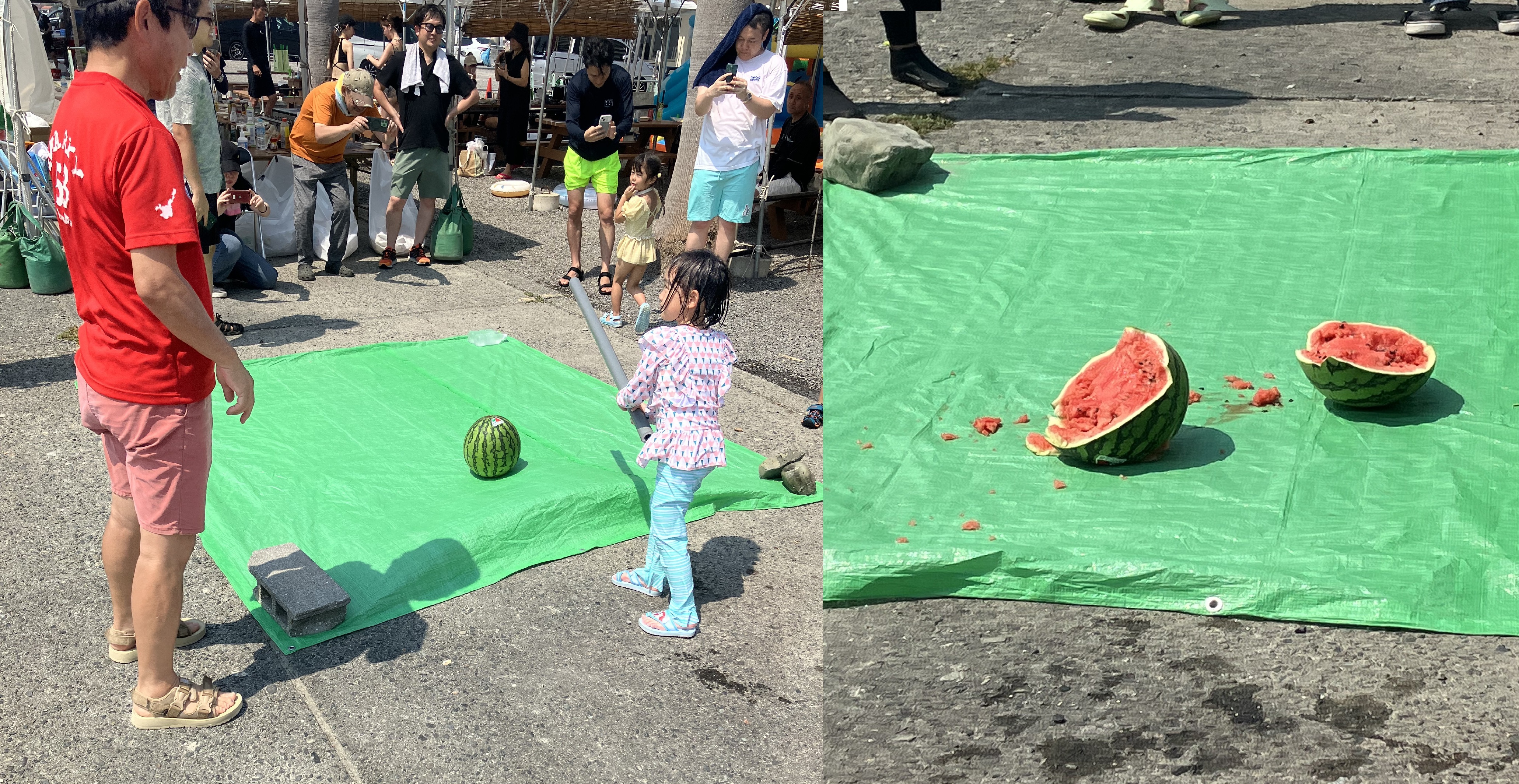 スイカ割りを実際にする機会も少なくなっていますが、スイカがパカッと割れると拍手が起こります。