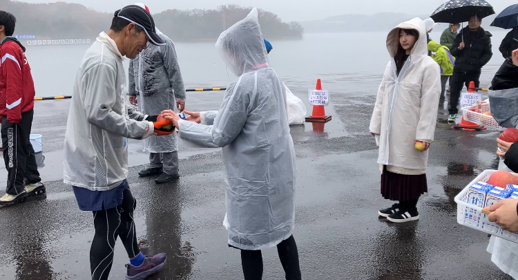 また、こちらも毎年恒例で、ゴール時には斉藤会計事務所よりリンゴを配られました。