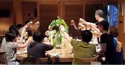 全員が集まる焼肉パーティーでは笑いすぎて、ニコニコ顔が戻らなくなりました。