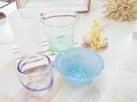 琉球ガラスの工房でグラスを作りました。心もお肌もピカピカになったようです。