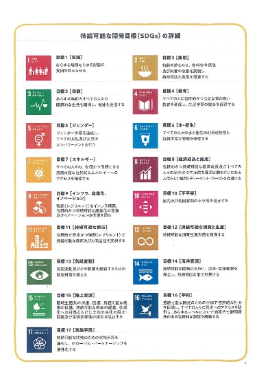 SDGsは「17の目標」と「169のターゲット(具体目標)」で構成されています。