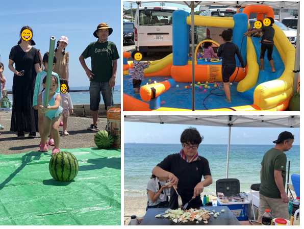 青い空と青い海、酷暑の中でも海風が涼しく感じられる絶好のBBQ日和に恵まれ、総勢100名近い方々にご参加いただき笑顔あふれる1日になりました。